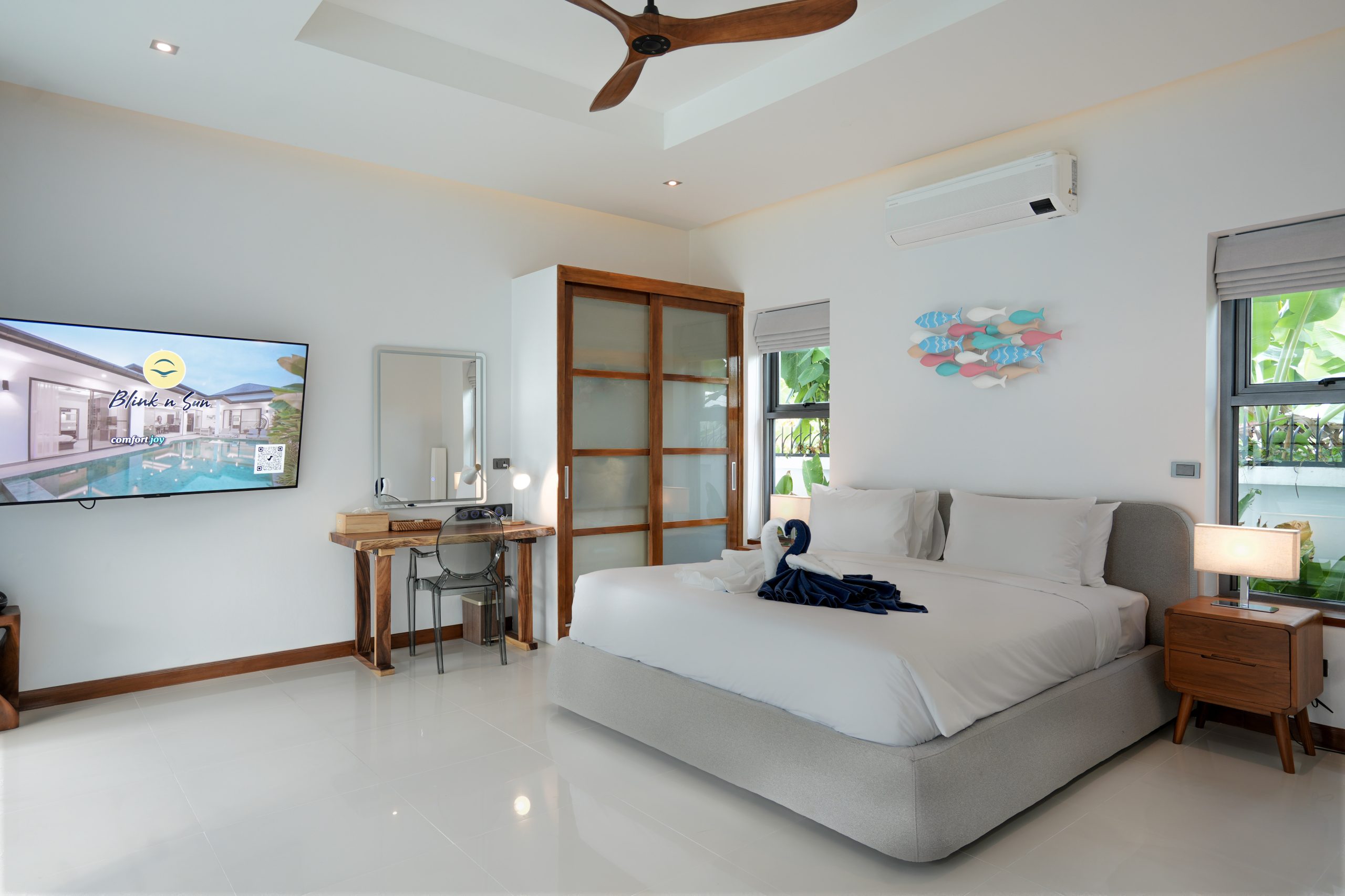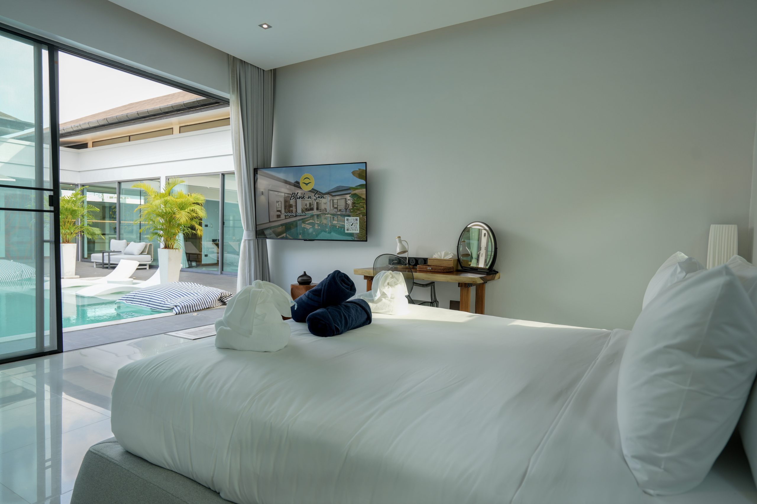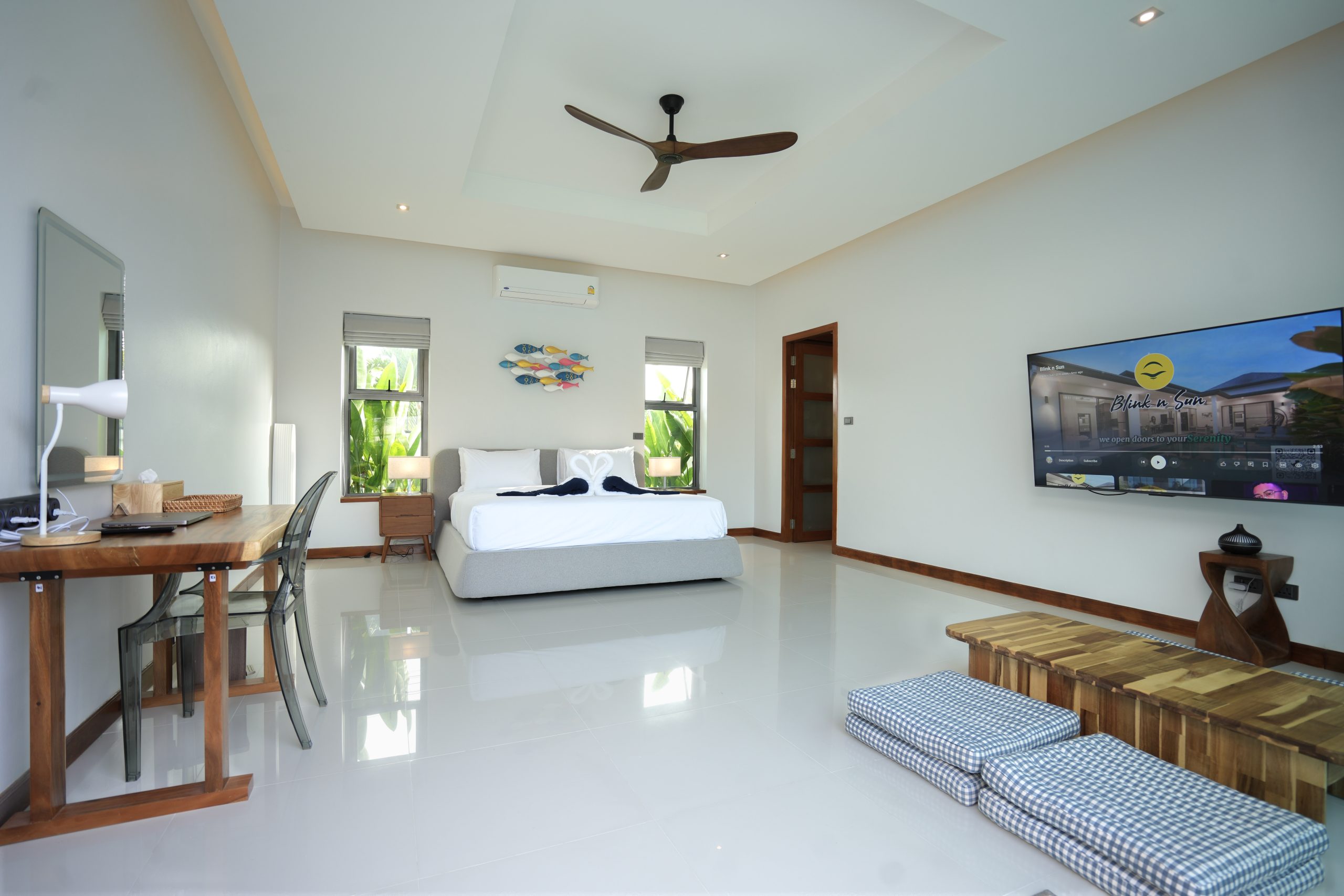 Welcome to Villa Tropicana – Luxury 4 Bedrooms Pool Villa in Rawai, Phuket, a beautifully designed private pool villa offering the perfect balance of comfort, privacy, and tropical elegance. The villa features 3 en-suite bedrooms और 1 bedroom with separate bathroom, making it ideal for families or groups. All living areas face the stunning private swimming pool and outdoor area, creating a seamless indoor-outdoor flow and a perfect layout for privacy during your holiday. The fully equipped kitchen with modern appliances is perfect for home-cooked meals or long stays, while the spacious living room with refined Chiang Mai-inspired décor provides a warm and inviting space to relax.